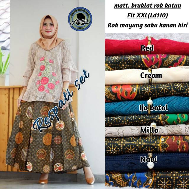 Jual Stelan Rok Lilit Payung Lina Dan Atasan Blouse Batik Wanita Di Lapak Linawati Bukalapak Rok model payung 5 warna.
