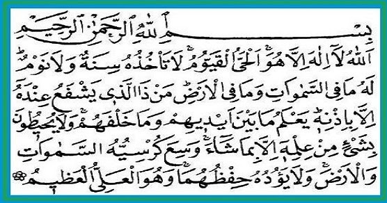 Ayat Kursi Arab Jelas : Whoever recites the first four ayats of surah al baqarah followed by ayatul kursi and then the last 3 ayats of surah baqarah, will not be inflicted with.