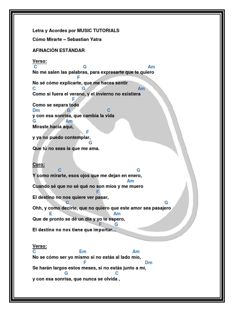 Como Mirarte Letra - Aprenda a tocar a cifra de como mirarte (sebastián yatra) no cifra club.