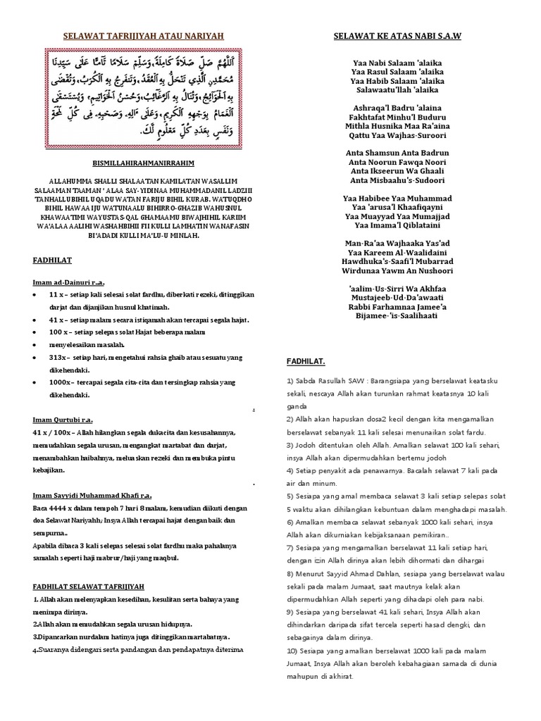 Fadhilat Selawat Nariyah / Antara kebaikan pengamal selawat ini: