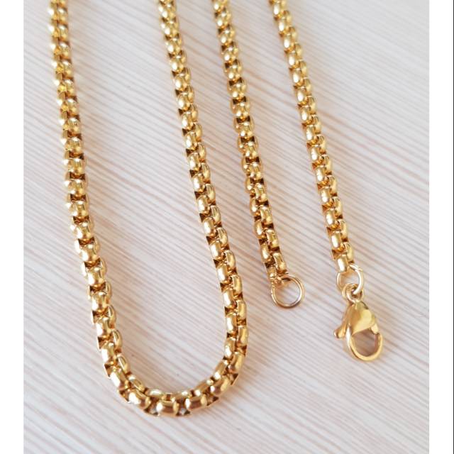 640x640 - Kalung titanium gold pria dan wanita motif kotak warna emas tahan lama anti pudar cowok cewek laki.