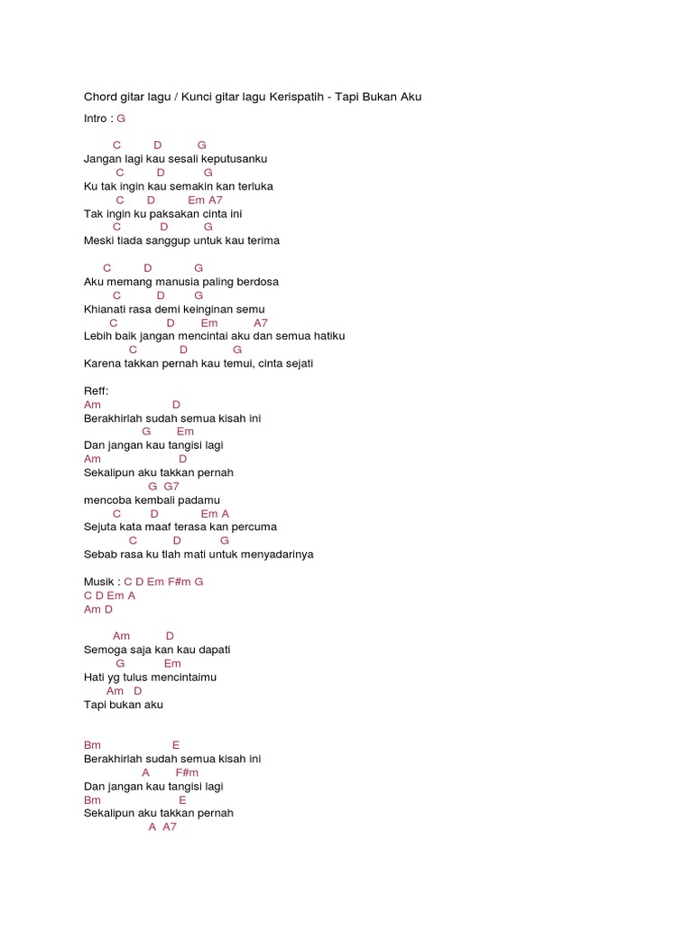 Kerispatih Tapi Bukan Aku Chord - (chorus) (overtone) bm berakhirlah sudah semua e kisah ini dan jangan kau a e f#m tangisi lagi.