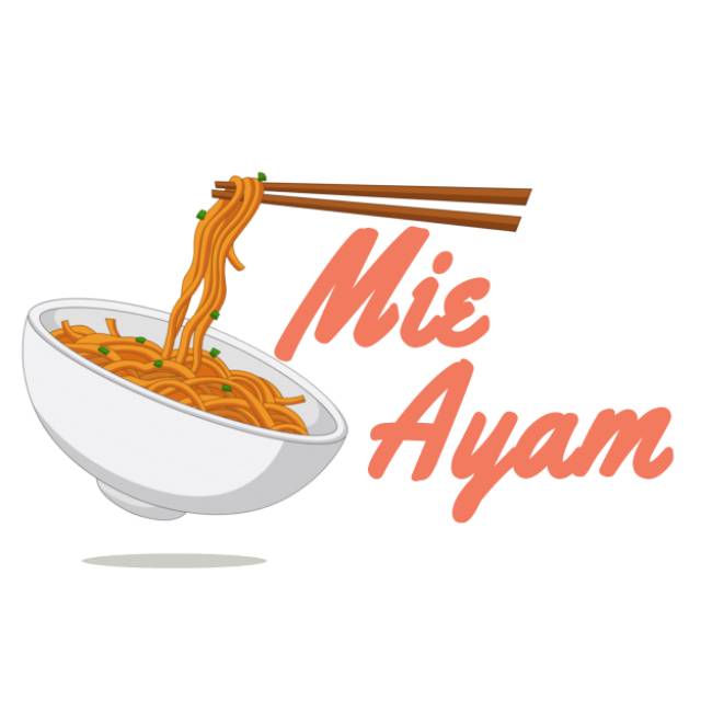 Logo Mie Ayam Vektor Png - Tulisan nama brand lebih dominan dengan keterangan nama jenis usaha dan taglinenya berada di posisi bawah.