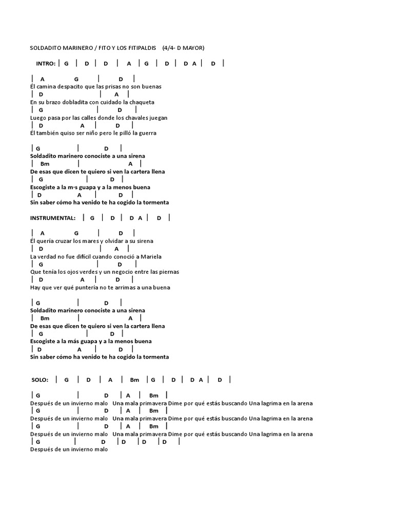 Soldadito Marinero Partitura Guitarra Pdf : G d d9 soldadito marinero conociste a una sirena.