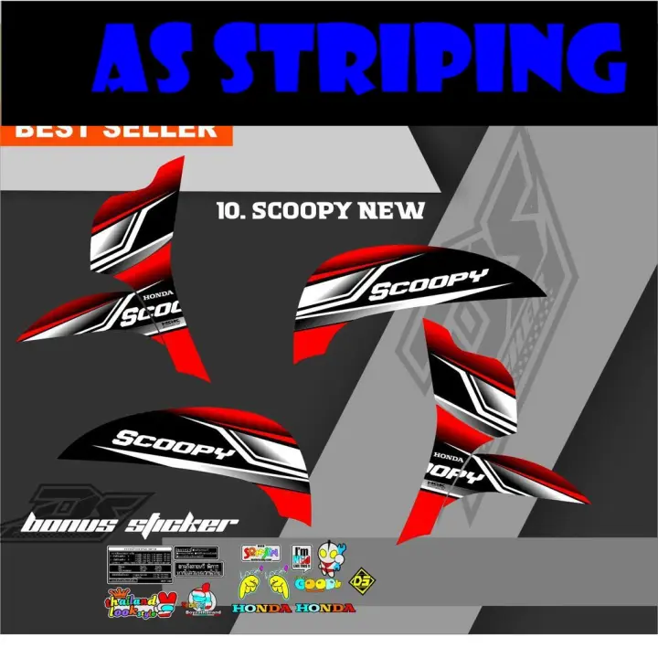 Striping Scoopy 2020 Simple Keren / Dari bahan orajet dengan cetakan roland collorfull serta dilapisi dengan laminasi glosy ataupun doff membuat keawetan sticker produk kami.