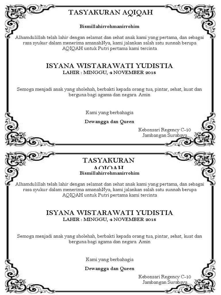 Tulisan Aqiqah : Hukum aqiqah adalah sunah muakkadah bagi mereka yang mampu.